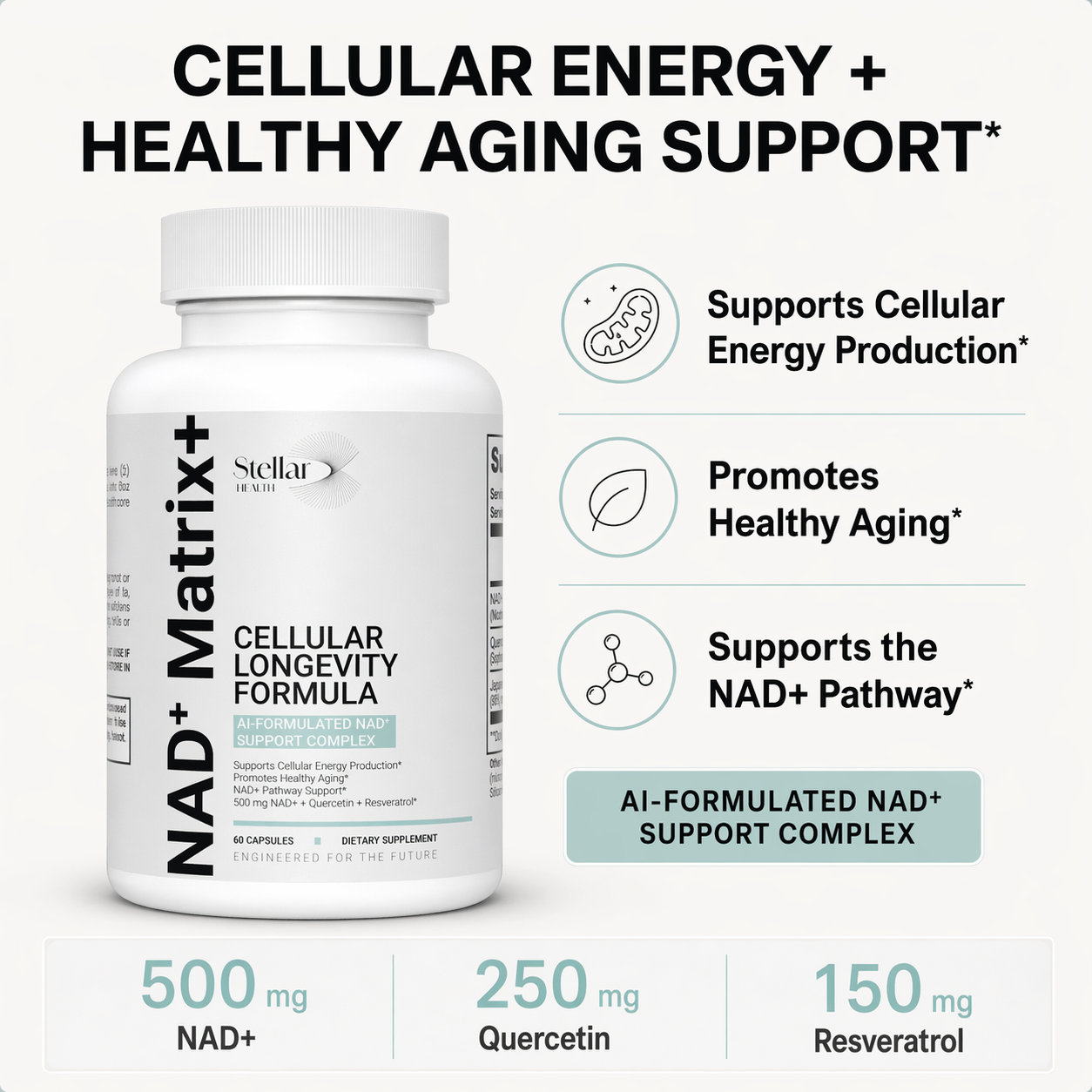 AI-formulated 10-ingredient synergistic complex for cellular energy production, NAD+ support, and mitochondrial optimization. Replaces 5-10 separate supplements.